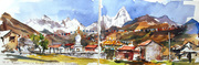 Mitunter führe ich auf Reisen Skizzenbücher mit. So z.B. in Griechenland, auf mehreren Trecking-Touren in Nepal und in Kroatien. Zum Einen ist es ein intensives Erlebnis, vor Ort die Eindrücke in schnellen Aquarellskizzen festzuhalten und zum Anderen macht es viel Freude, später zuhause diese bebilderten Reise-Tagebücher durchzublättern! Besonders eindrucksvoll finde ich dabei doppelseitige Panorama-Ansichten. Hier ein paar Beispiele.